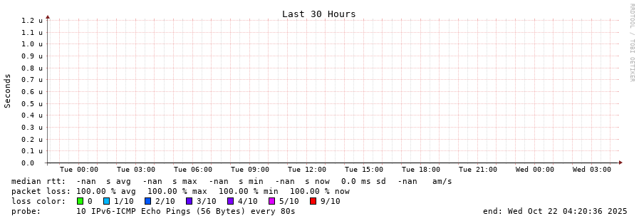 traceroute to fd78:93ae:fdfe::2 (fd78:93ae:fdfe::2), 30 hops max, 80 byte packets - Generated at 2025-10-21 20:30:01