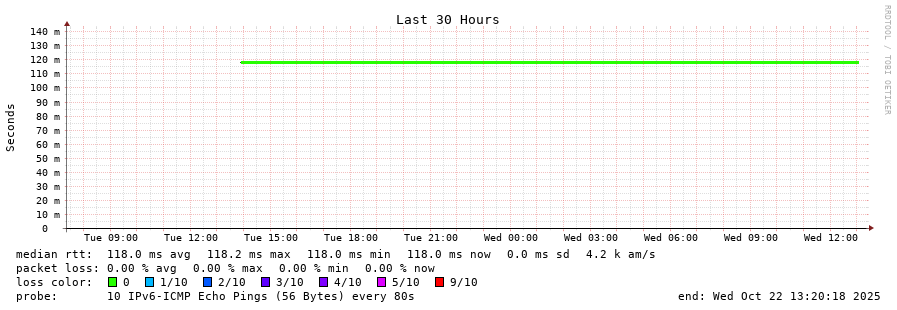 traceroute to 2001:b68:d::28 (2001:b68:d::28), 30 hops max, 80 byte packets - Generated at 2025-10-22 05:30:01