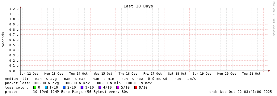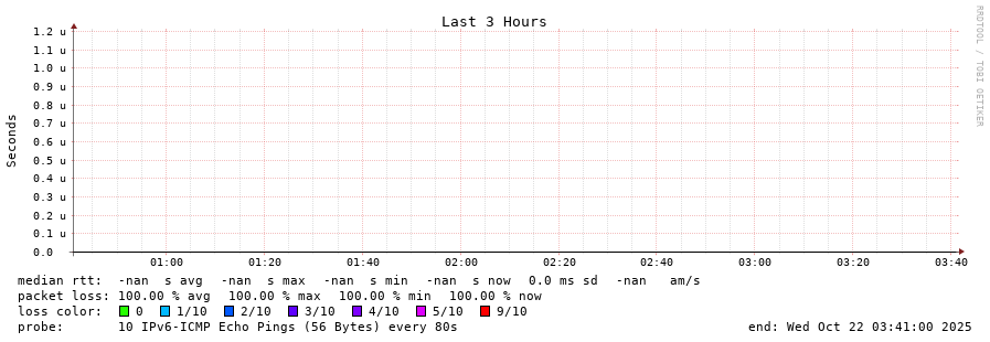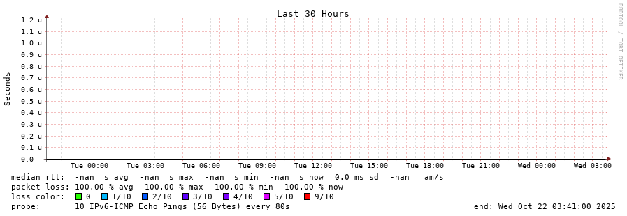 traceroute to fd69:226f:3a3c::2 (fd69:226f:3a3c::2), 30 hops max, 80 byte packets - Generated at 2025-10-21 20:30:01