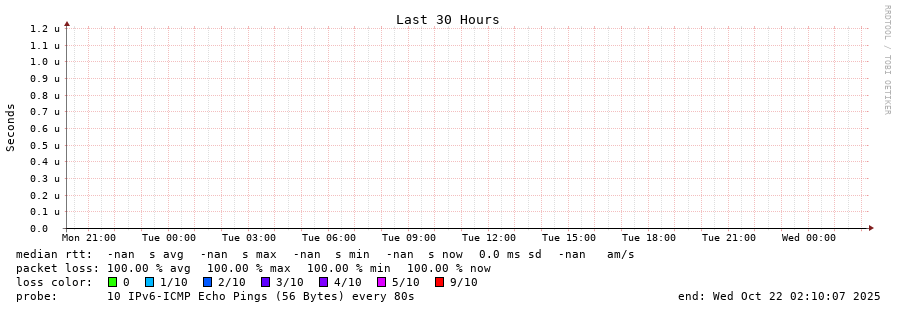 traceroute to fd9b:f75:a3d5::2 (fd9b:f75:a3d5::2), 30 hops max, 80 byte packets - Generated at 2025-10-21 20:30:01