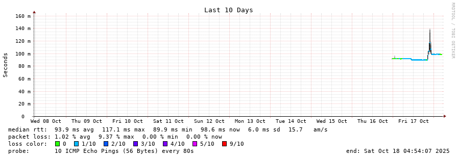 14 > 138.0.41.171 (138.0.41.171) [AS52320] 93.069ms 93.044ms 92.921ms